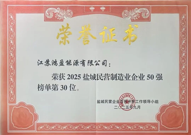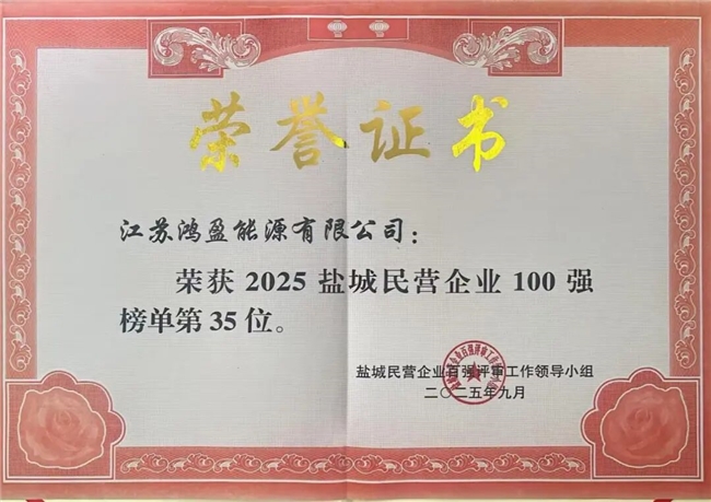 近期,2025江苏省盐城市民营企业百强榜单发布,江苏鸿盈公司再度登榜,荣获盐城民营企业研发投入20强第14位,盐城民营制造企业50强第30位,盐城民营企业100强第35位。江苏鸿盈自成立以来,始终秉持集团“倡导绿色能源 完美人类生活”的企业使命,以国际化的视野,深耕新能源行业领域,为集团高质量发展持续注入新动能。